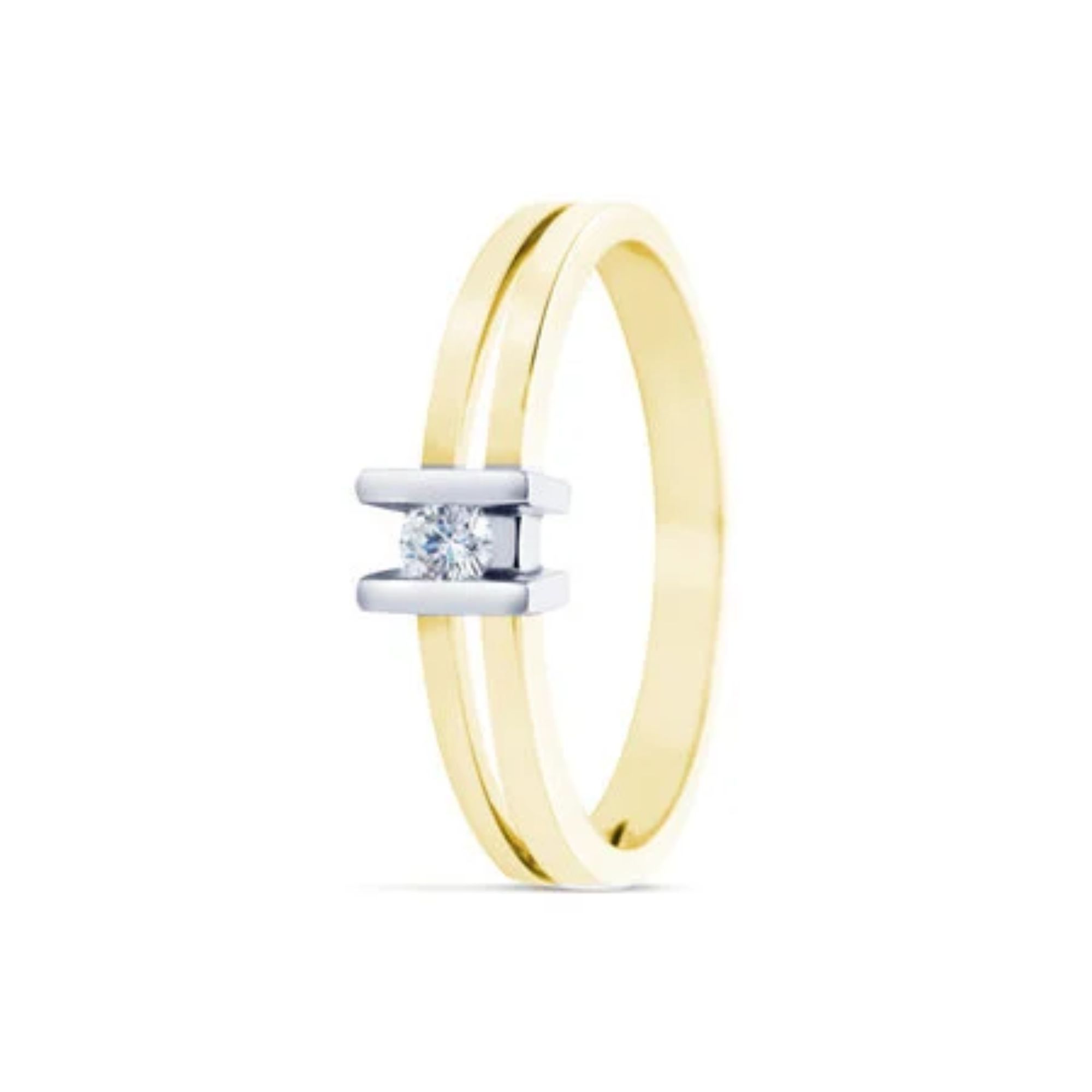 Een 14 karaat geel- en witgouden bicolor R&C Legacy Julie ring met 0,02ct wit diamant.